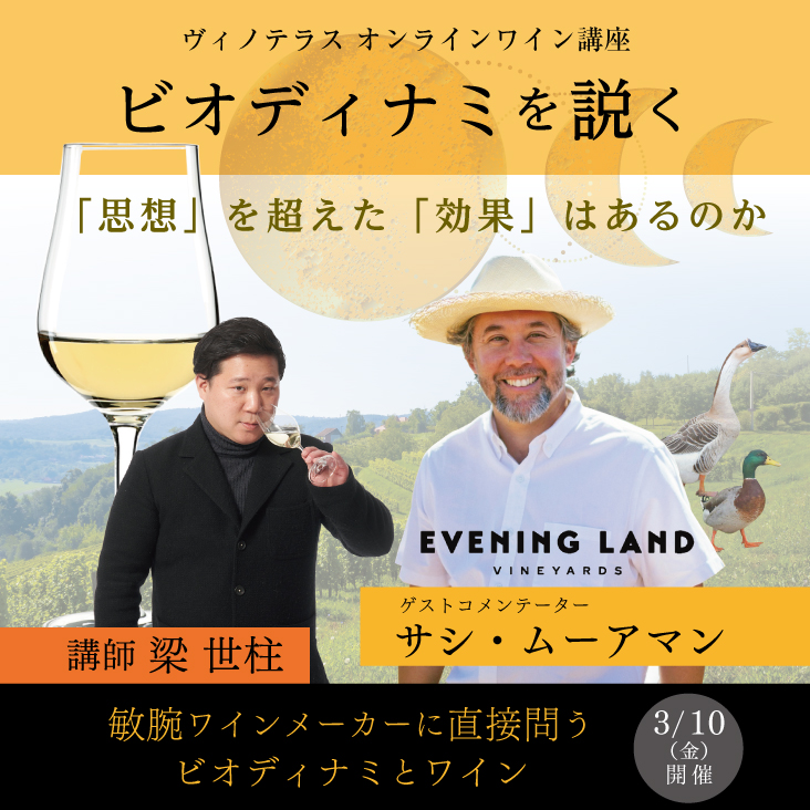 今回の講座では、オレゴンで最も注目されているワイナリーのひとつ「イヴニング・ランド・ヴィンヤーズ」から超敏腕ワインメーカーのサシ・ムーアマン氏とお繋ぎし、